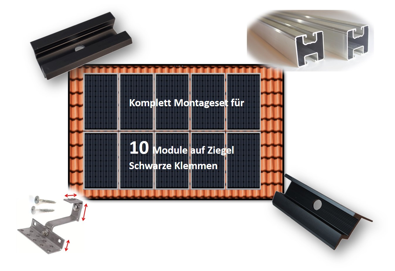 - Montagesystem: Einlagiges Gestell für eine dachparallele Installation der Module in Hochkant-Ausrichtung, geeignet für Sparrenabstände von ca. 85 cm. Komplett schwarz. Inklusive schwarz eloxierter Profile