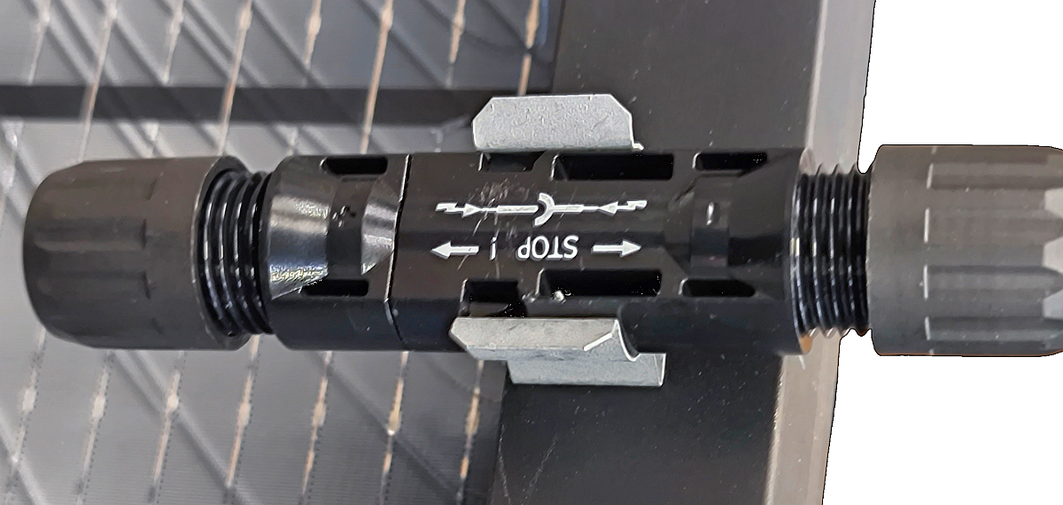 MC4-Stecker, Halteclip, Befestigungsclip, Photovoltaik, Montagesystem, Stahl, Solaranlage.