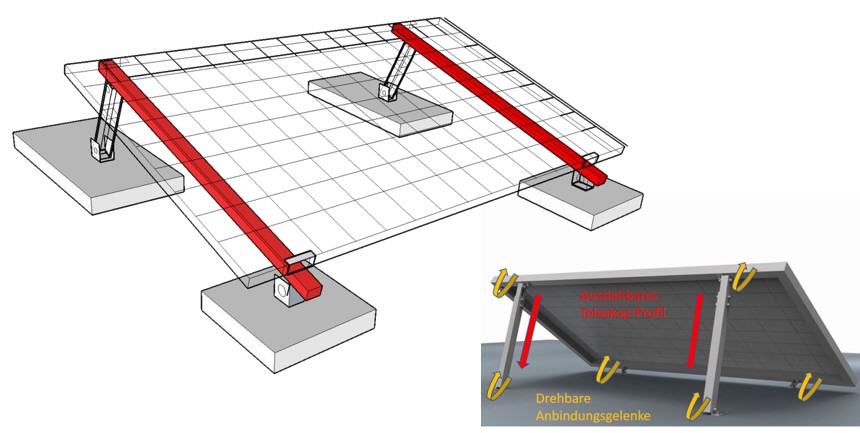 - 3 Sets Vario Aufständerung mit je 2x Aluprofil zur weiteren Versteifung. Art. 1969. Inkl. Endklemmen.