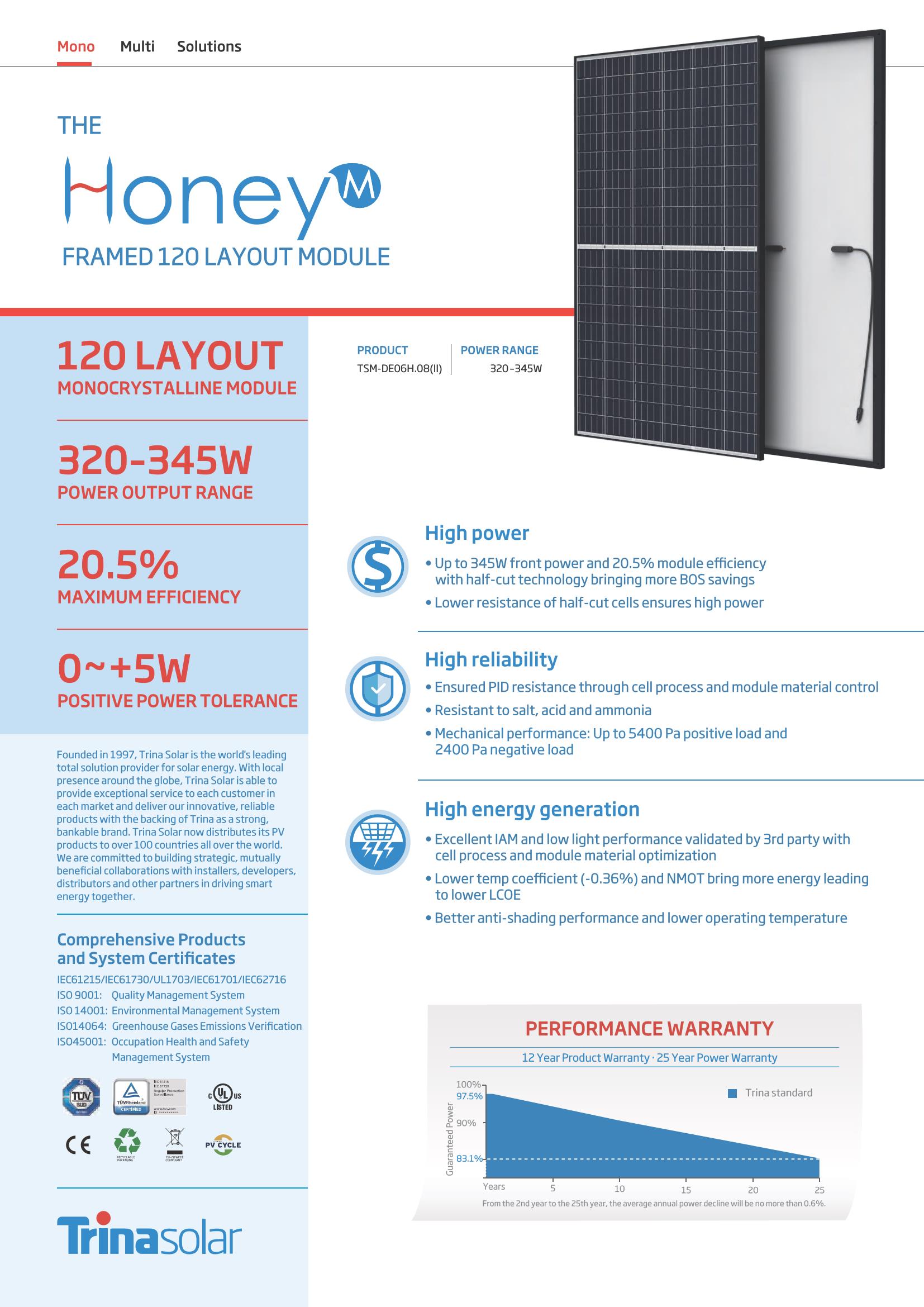 - 5x Trina Solar Photovoltaikmodul. Je 430Wp. Mit monokristalline Halbzellen. Abmessung: 176 x 113,5 x cm