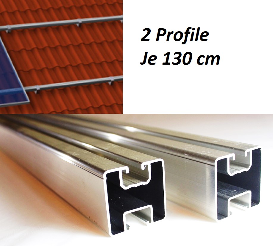 2x Solar Aluprofil Länge: 1.30m. 40x40mm Für PV Dachhaken Stockschraube