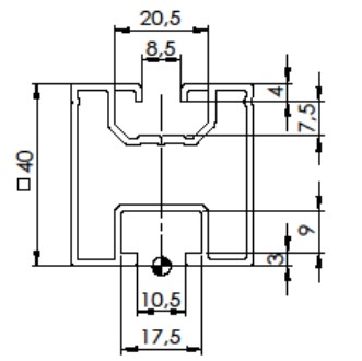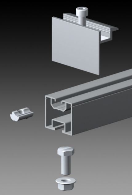 Solar Aluprofil 40x40mm, Länge ca. 5,85m (585cm), Oben Nutenstein, unten Sechskantschraube (DIN933)