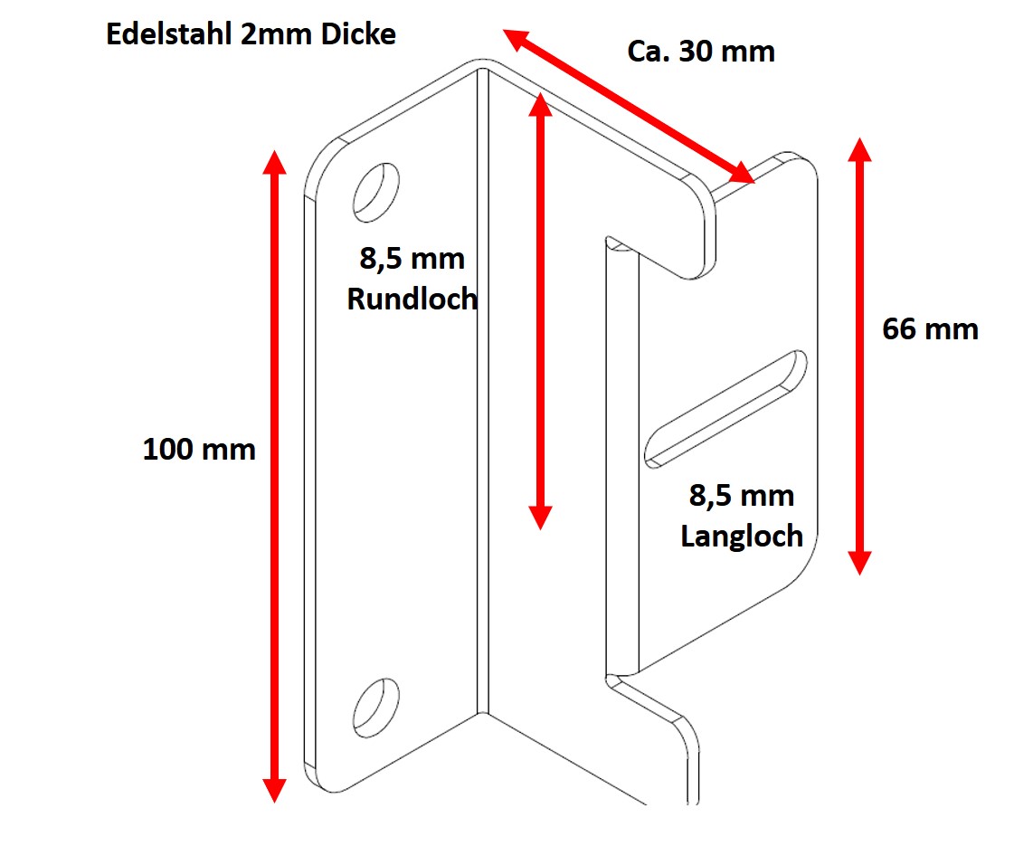 - Flansch oben sowie Steg mit Langloch unten: 30mm Breite
