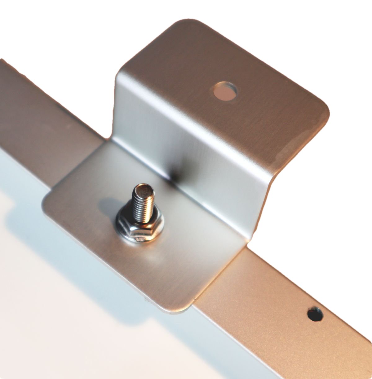 Über das eingebrachte Langloch kann eine direkte Befestigung mit einer M6 Schraube mit dem Modulrahmen erfolgen.
