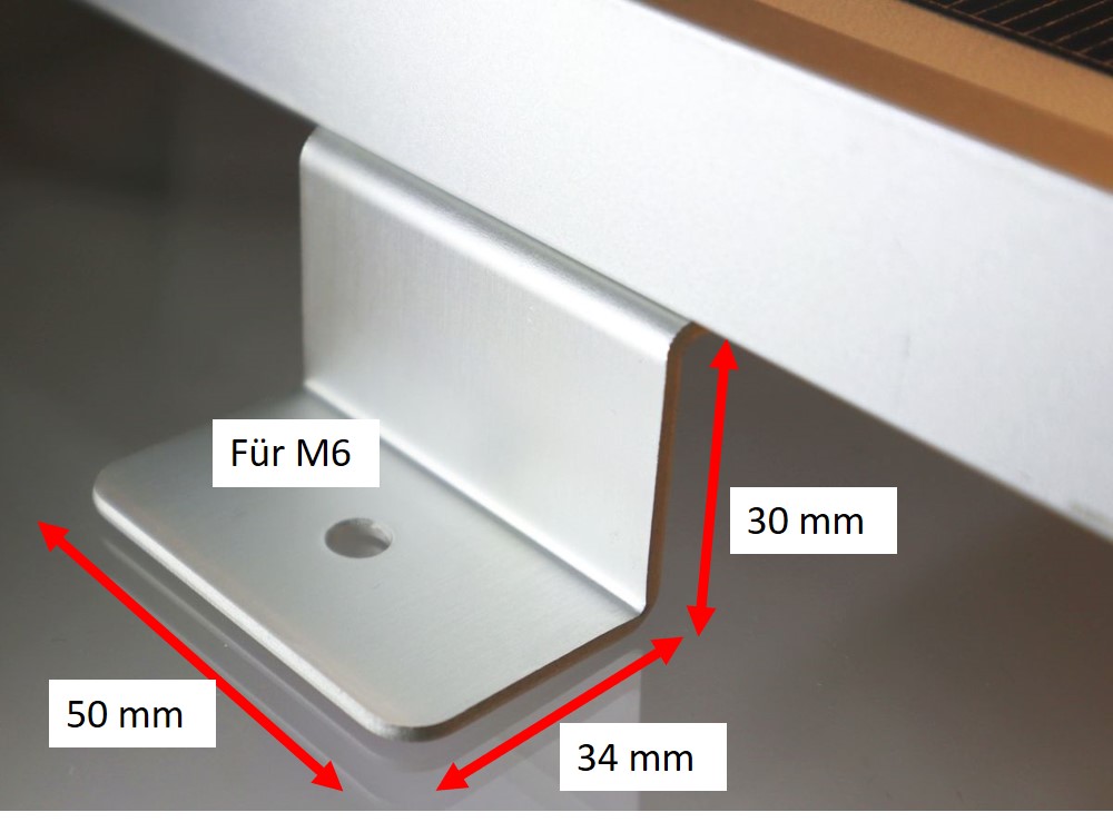 Im Fuss sind 2 Rundlöcher eingebracht. Ebenfalls für 6mm Schrauben. Der Halter kann somit auf verschiedenen Untergründen befestigt werden.