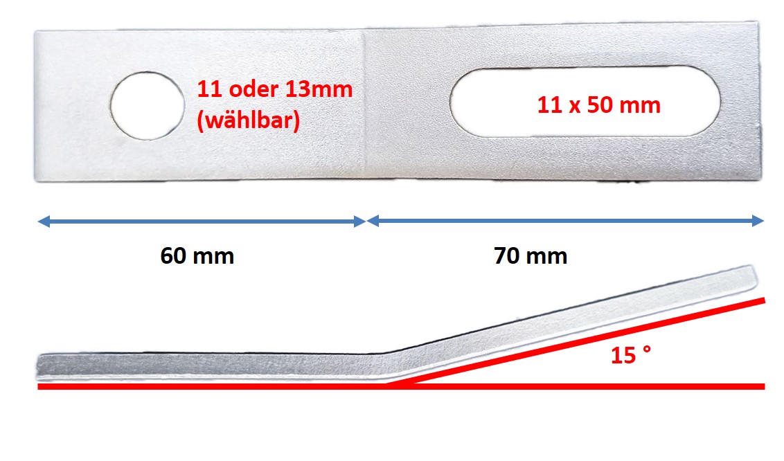 Adapterblech mit 15° (165°) Winkel für leichte Aufständerung