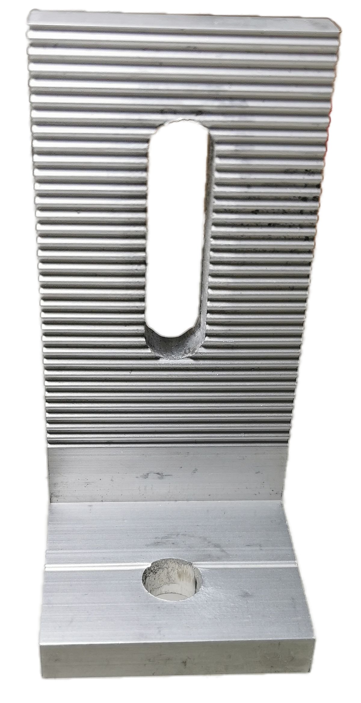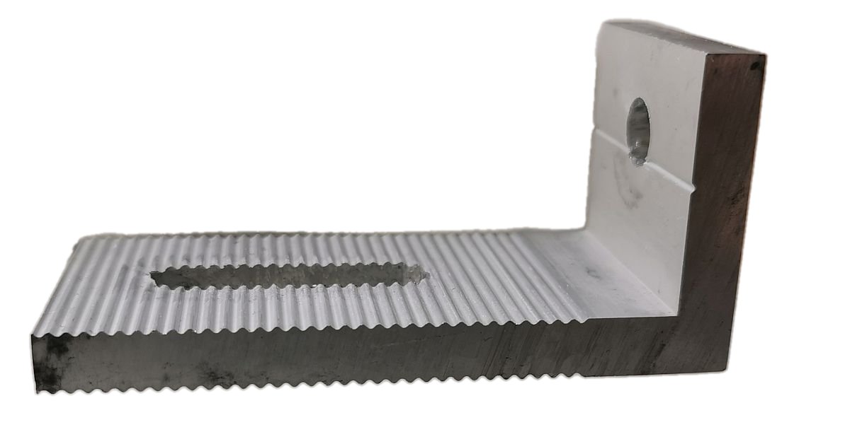 Material Aluminium mit 1 x Langloch am Flansch für M8 & 1 x Rundloch am Fuß für M10 Schraube.