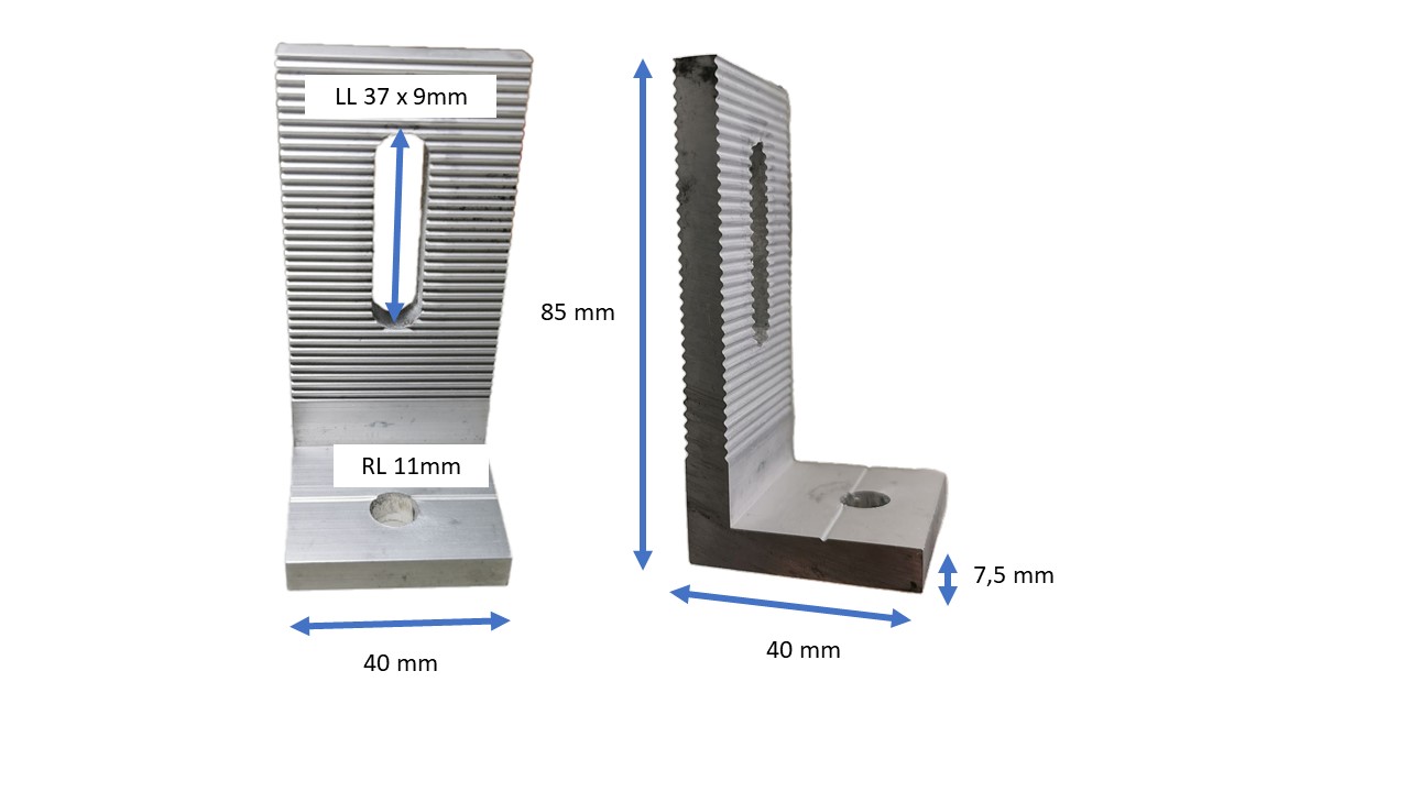Produktinformationen "Alu 90° Winkel Extra Stabil 11mm ZENTERLOCH 85x40x7,5mm Solar Verbindungswinkel PV (TP02)"