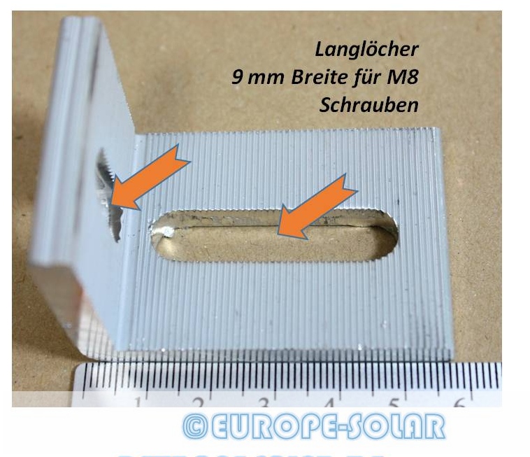 Die zwei Langlöcher sind zur Aufnahme je einer M8 Schraube und ermöglichen ein komfortables justieren der Verbindung.