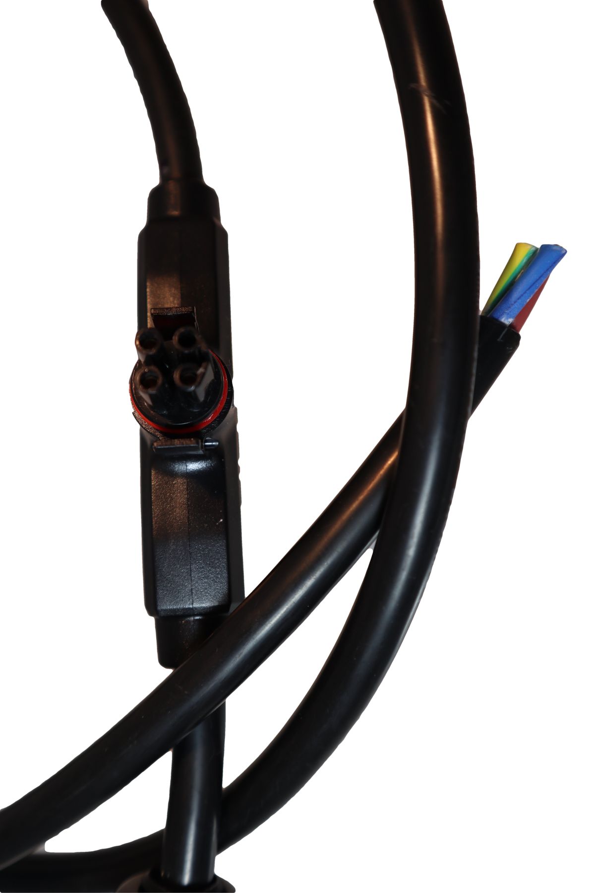 - 1 x Feldkabel. Länge ca. 1m. Einseitig Stecker für Mikrowechselrichter Anschluss (Sinbon). Andere Ende offen für einphasigen Anschluss (L -N - PE)