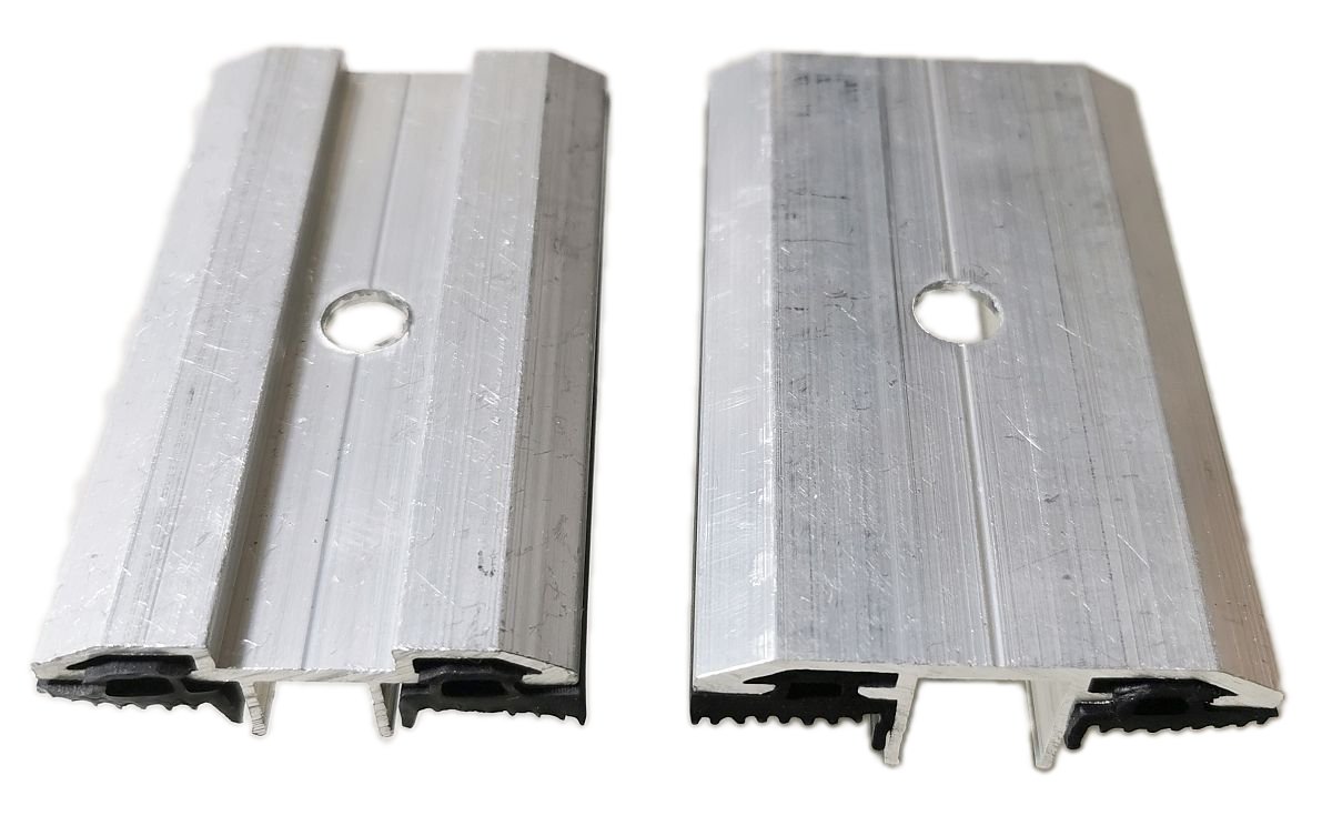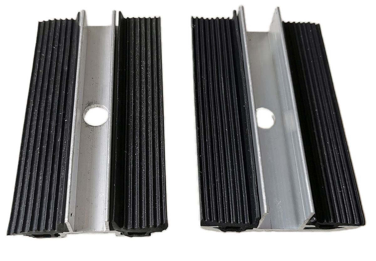 Für rahmenlose Photovoltaikmodule (Glas Glas Module , Bifaciale Module ohne Rahmen). Sicherer Halt durch eine lange Klemmlänge von 80 mm. Das geriffelte EPDM sorgt für eine sichere Klemmung der rahmenlose Photovoltaikmodule ohne das Solarglas zu zerbrechen.