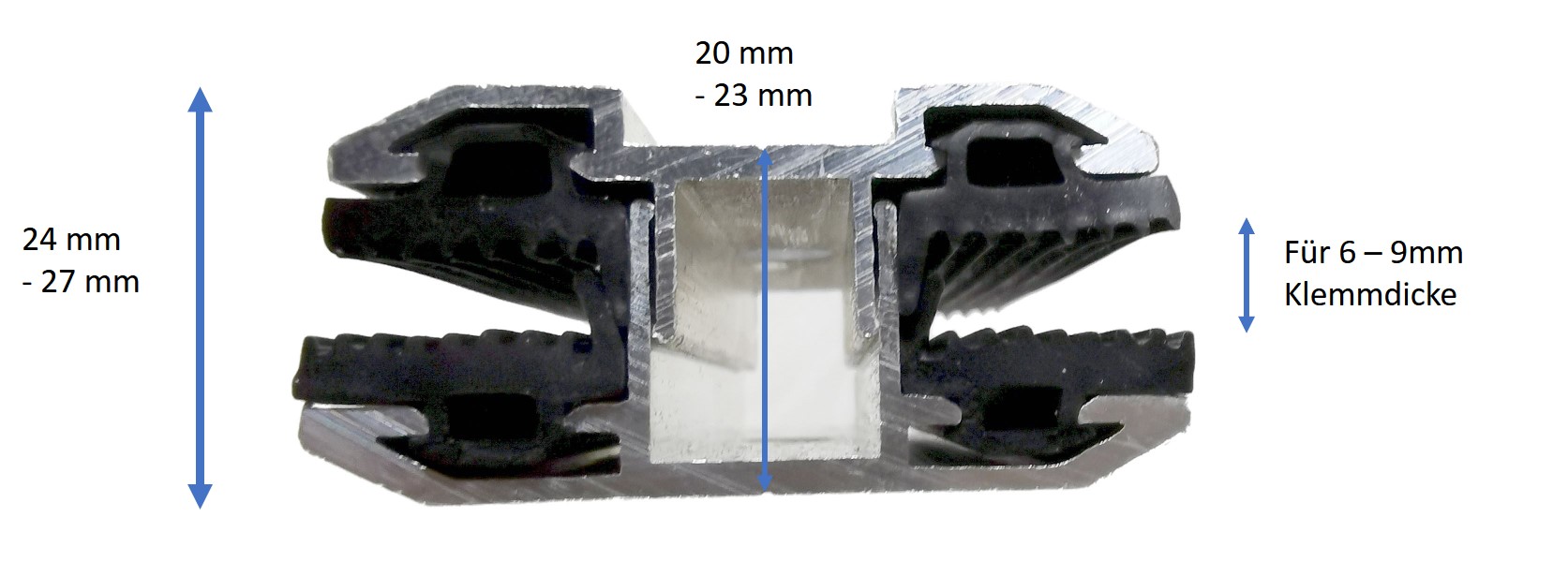 Klemmdicke: Variabel von 6 - 9 mm.