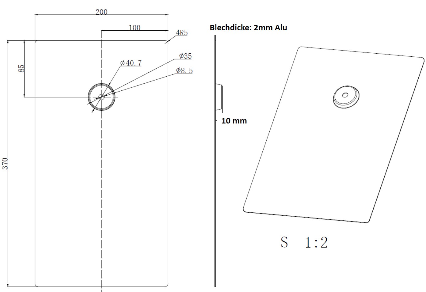 - 1 x Dichtblech aus Aluminium (37 x 20 cm, 2 mm dick, Lochdurchmesser 8,5 mm, Lochposition exzentrisch mit 85 mm Randabstand)