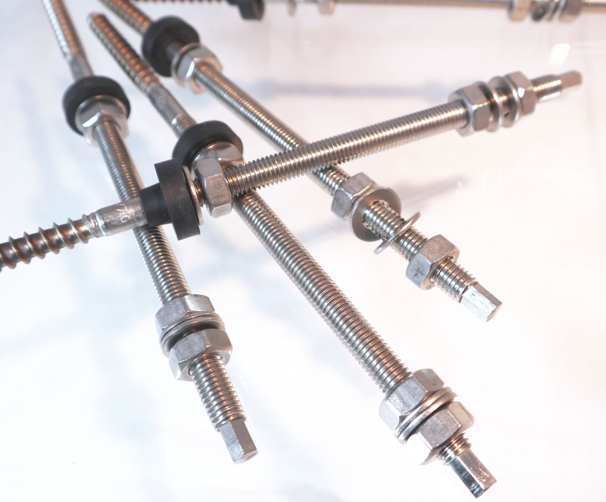 Mit Edelstahl Stockschrauben vorkonfektioniert mit Sperrzahnmuttern & Dichtung, Aluprofilen, Modulklemmen, Befestigungsclips, Profilverbinder