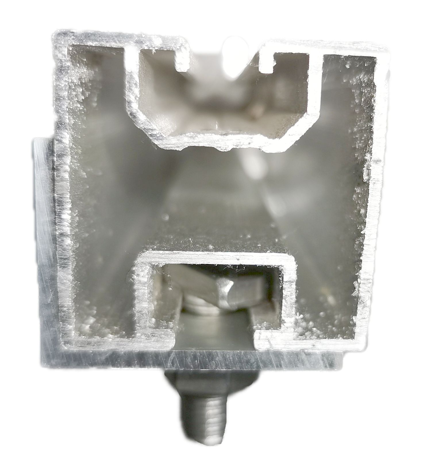 Vorteil der Hammerkopfschrauben ist es, dass diese sich nachträglich in die Profilunternut einsetzen lassen. Die M10 Sechskantschraube muss hingegen von der Seite eingefädelt werden, was im Falle einer vergessenen Schraube umständlich ist. Die Hammerkopfschraube eignet sich zum Beispiel, um z.B. noch nachträglich schnell eine Erdungsklemme oder andere nicht tragende teile anzubauen ohne die Schraube von der Seite einzufädeln. Stellen Sie sicher, dass der Kopf sich in der Nut quer stellt. Durch das Anzugsmoment ist das normalerweise sichergestellt. Es sollte aber dennoch zusätzlich kontrolliert werden. Die Stellung der Schraube kann recht einfach durch den Schlitz am Schraubenende erkannt werden.