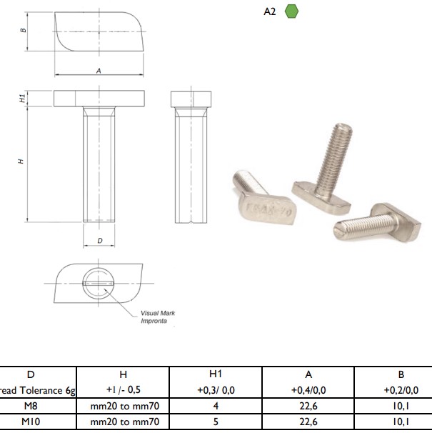 M10 Hammerkopfschraube. Ausführung Hammerkopf: 28/15. Kopfgröße ca. 22,6x10,1mm. Edelstahl A2.