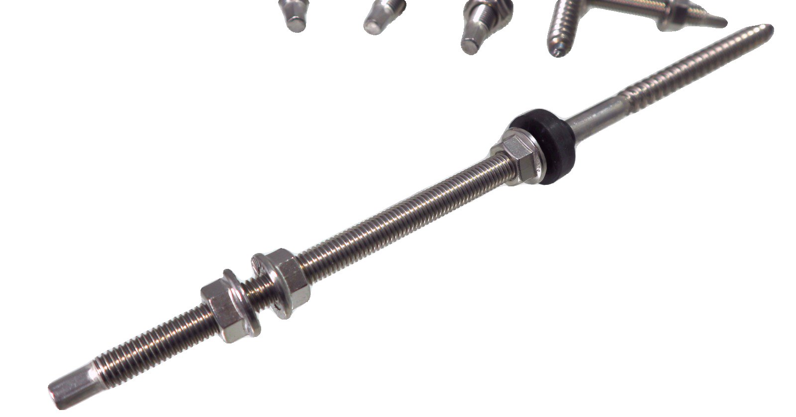 Set besteht aus: 1 x Stockschraube, 3 x M10 Sperrzahnmutter, 1 x EPDM Dichtring