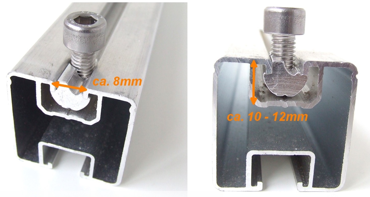 • Komfortable Montage: Der Nutenstein kann von oben in eine 8er Nut eingeklickt werden und sich zusätzlich seitlich verschieben um die Klemmenposition auszurichten. Achten Sie darauf, dass Ihre Profile mit dem Nutenstein kompatibel sind.