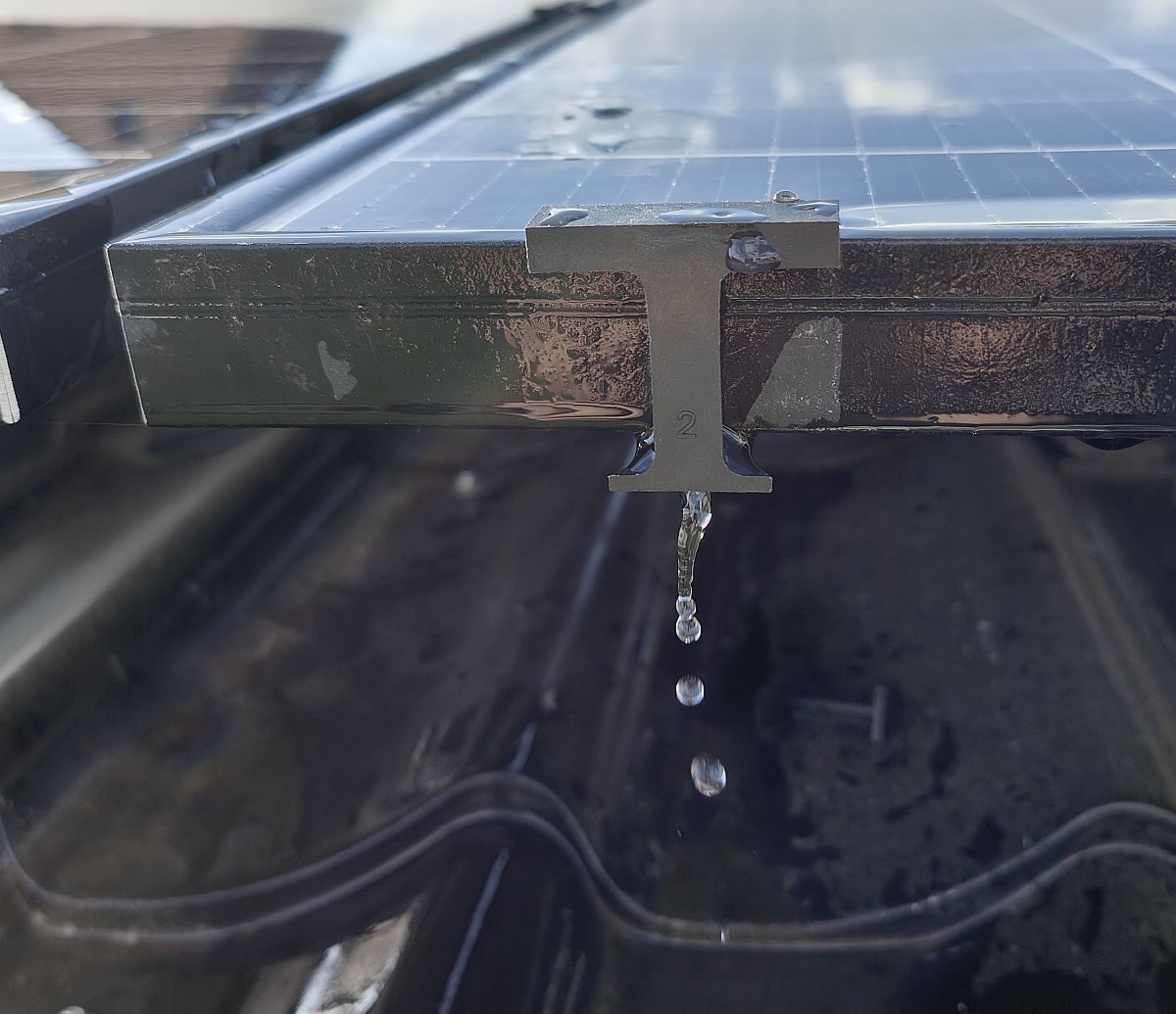 Clip zur Wasserführung und Reinhaltung von Solarmodulen