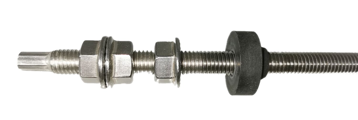 1x Stockschraube vorkonfektioniert mit 3x M10 Sperrzahnmutter und EPDM Dichtung