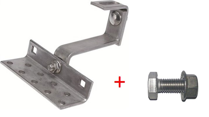 Option: Mit M10 Schraube & Sperrzahnmutter (Edelstahl) zur Anbindung an Aluprofil und 8x100mm Tellerkopfschraube (Stahl blau verzinkt passiviert) zur Verschraubung auf Dachsparren