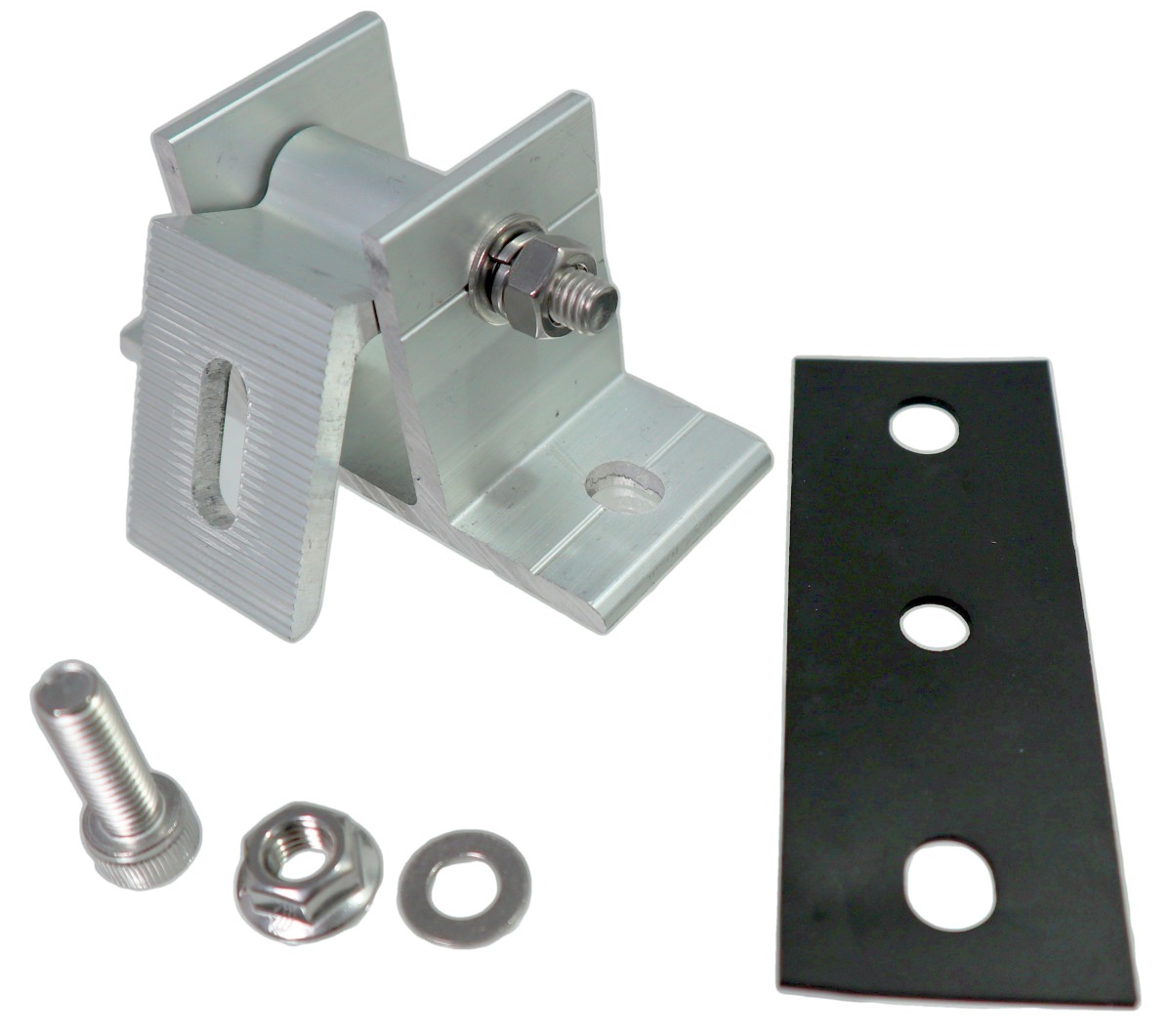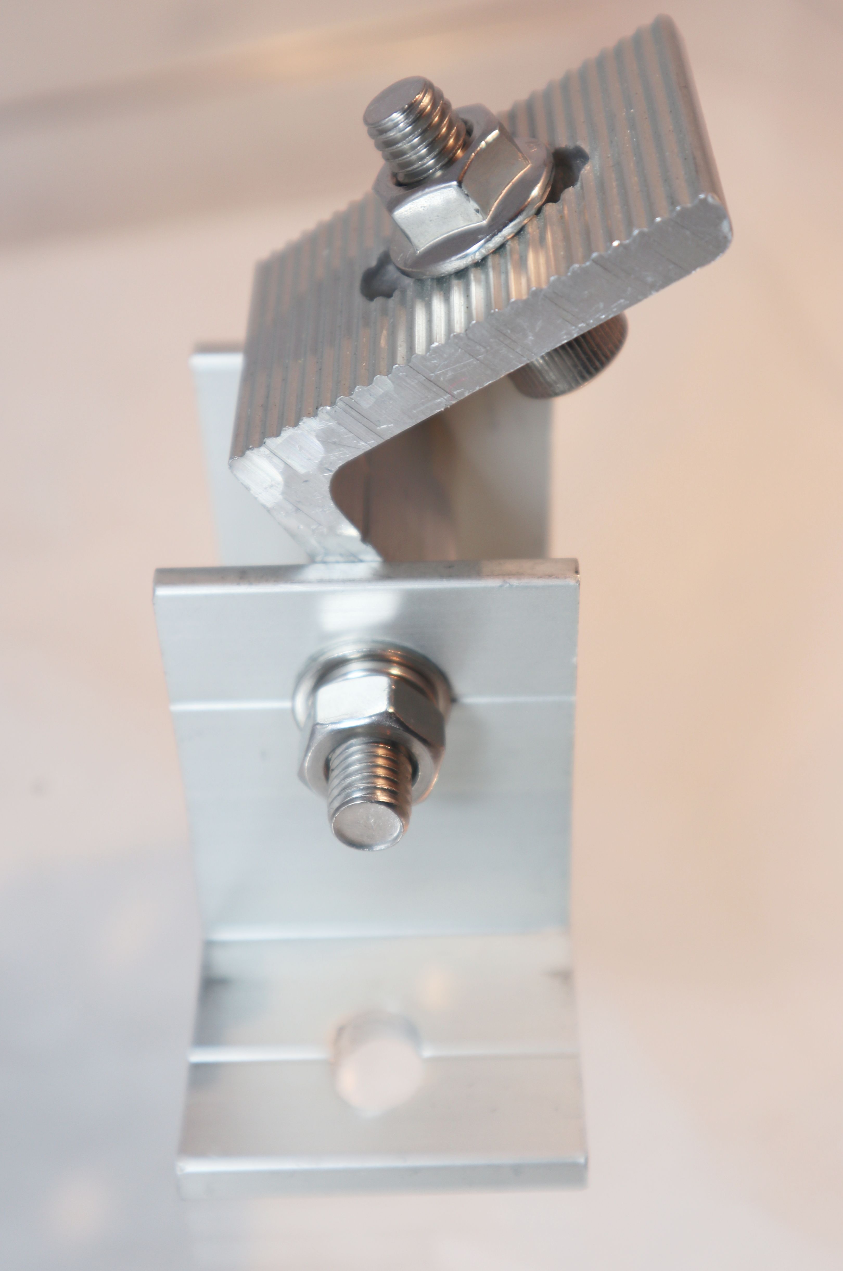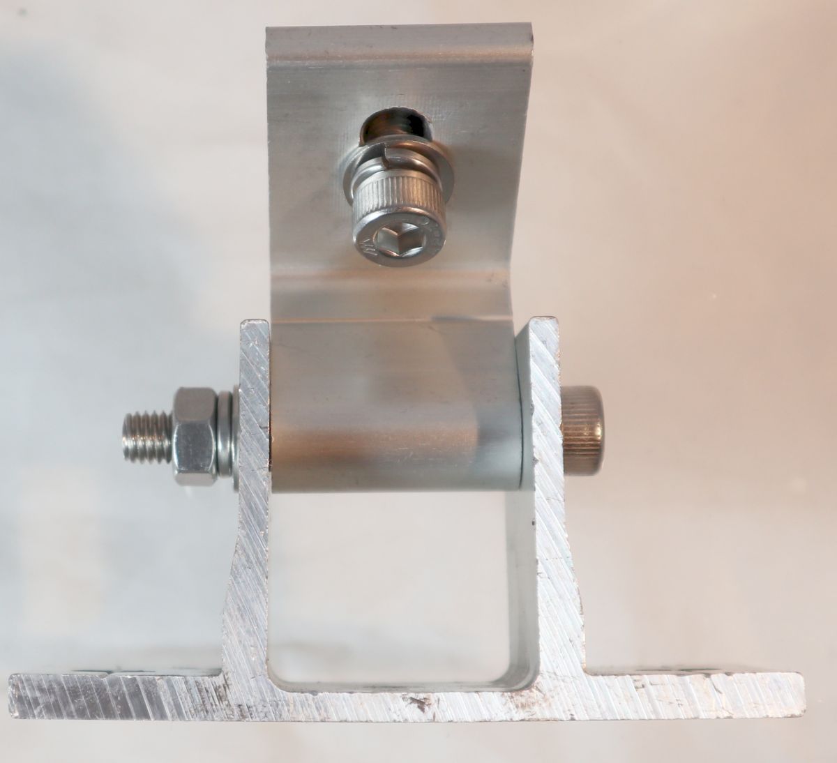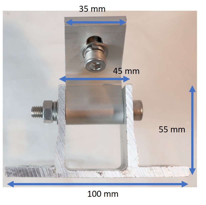 Die Vario Konsole eignet sich ideal für individuelle Aufständerungskonstruktionen im PV-Bereich, insbesondere wenn ein variabler Neigungswinkel benötigt wird. Der Aluwinkel lässt sich frei einstellen und mit der Zentralschraube fixieren.