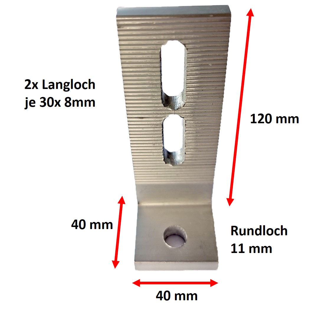 Produktinformationen "Winkel Doppel Langloch Alu Extra Stabil 120x40x9mm Solar PV Aluwinkel"